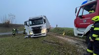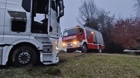 Am Mittwoch, 12. November wurden wir um 15:53 Uhr zu einem Zwischenfall mit einem LKW alarmiert. Das Fahrzeug war auf einem Feldweg in Schräglage geraten.