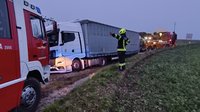 Von uns wurde der LKW mit dem Tanklöschfahrzeug gegen weiteres Abrutschen gesichert sowie austretender Diesel aufgefangen. Anschließend unterstützten wir das Abschleppunternehmen bei der Bergung des Fahrzeugs.