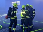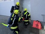 Als Übungsannahme galt ein Brand bei einem Gewerbebetrieb, bei dem eine vermisste Person durch den Atemschutztrupp gerettet werden musste.