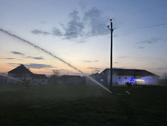Die Löschwasserversorgung wurde durch die Besatzung des Kleinlöschfahrzeuges von einem nahegelegenen Löschwasserbehälter sichergestellt. Parallel dazu erfolgte der Lösch- und Innenangriff durch die eingesetzten Trupps.
